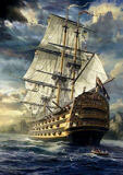 Алмазная вышивка «Старинный фрегат готовится к бою» 40x50 см